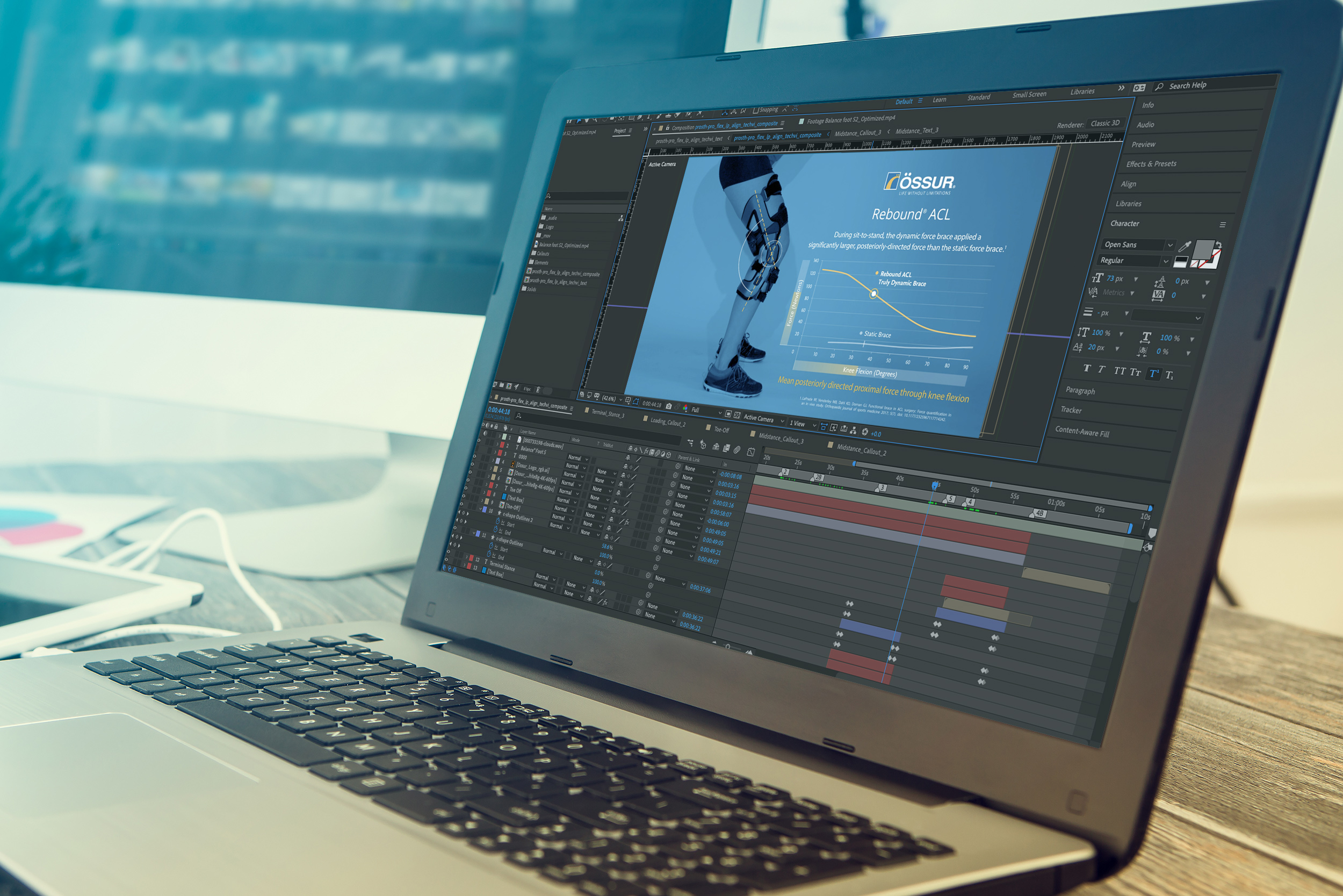 Project challenge: Create a compelling B2B video utilizing video clips and charts highlighting the dynamic forces of the ACL brace.